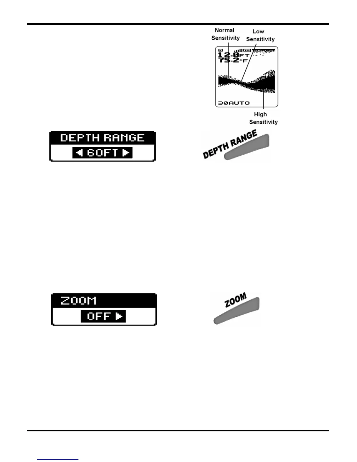 In Zoom, the Unit continually changes the upper and lower Depth