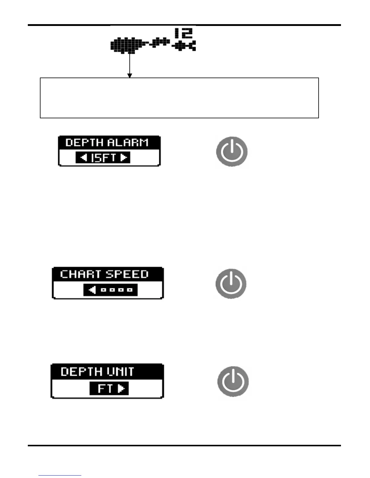 Press POWER-MENU until the DEPTH ALARM menu appears.