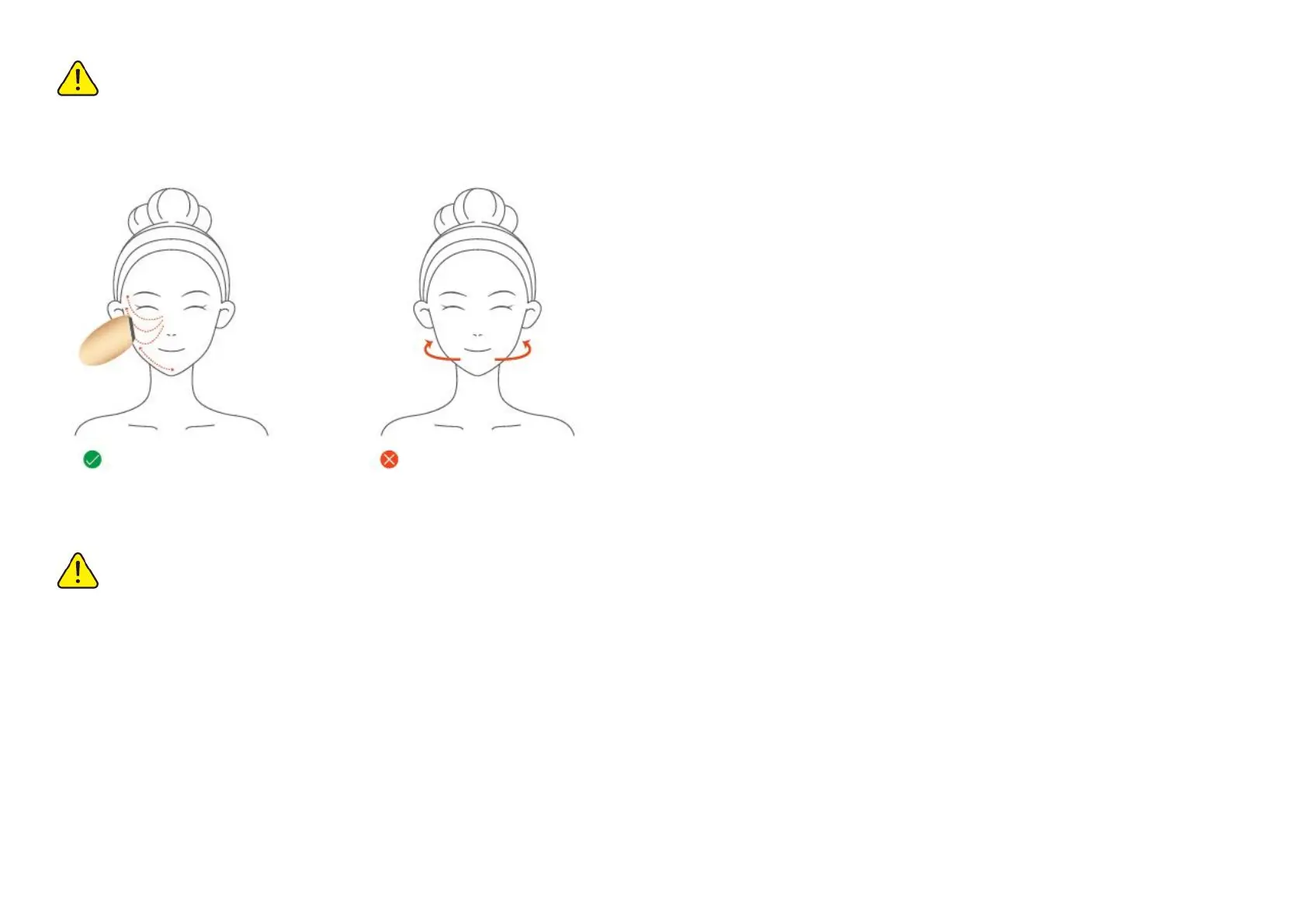 ● When using this device for gliding treatment (Express mode), ensure consistent contact between the device head and the face. Avoid any abrupt movements