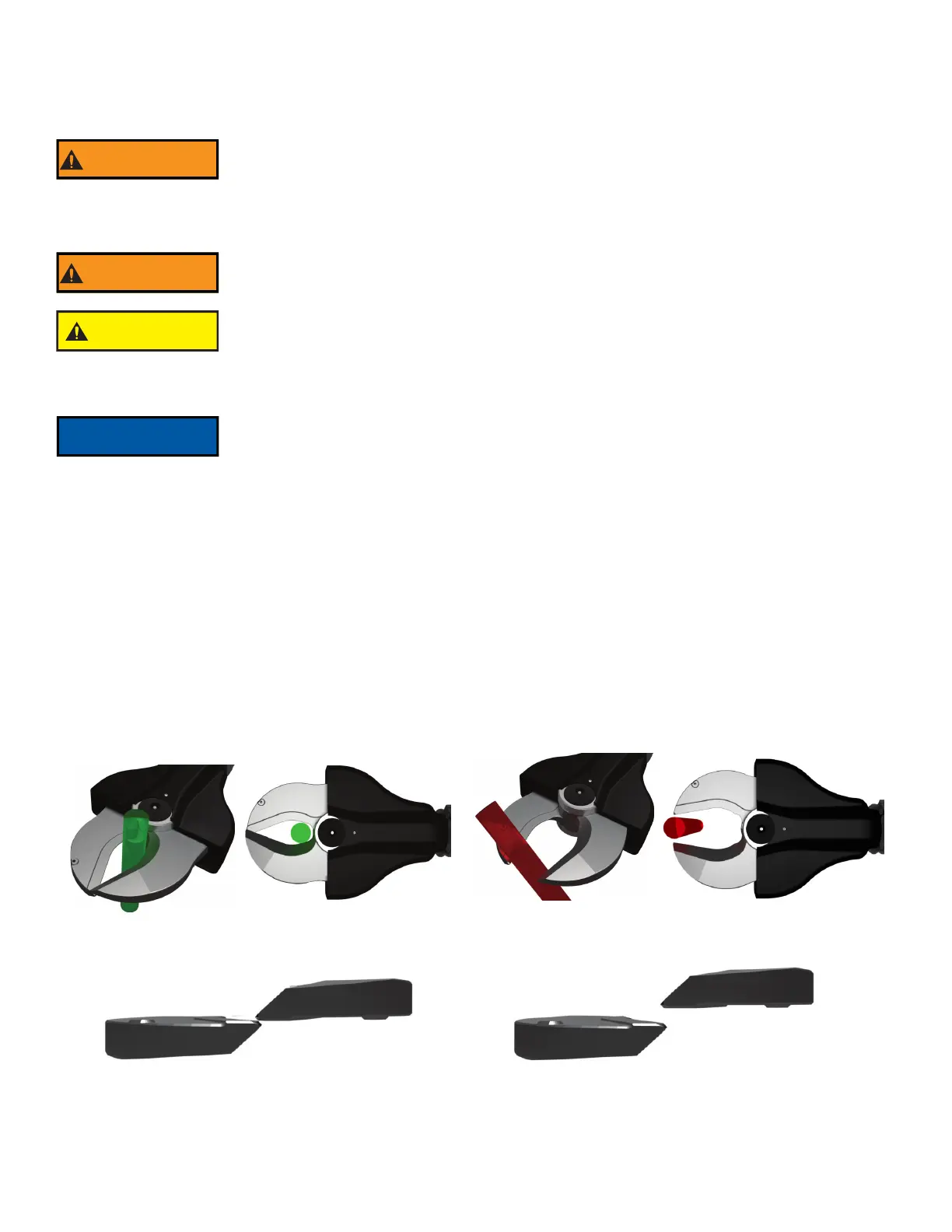 object. Obtain the maximum cutting forces nearest the pivot point. Start the cut with the blades as fully engaged as possible. Make the