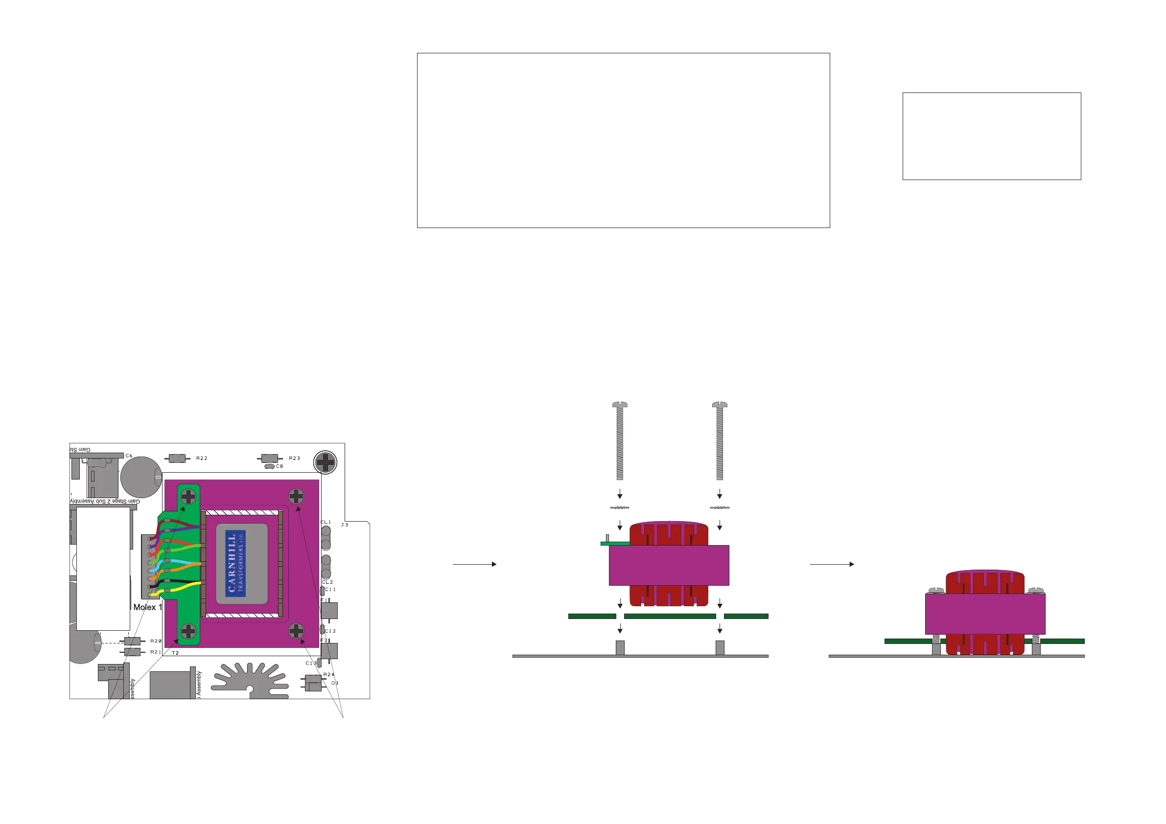 Gently screw the output transformer to the chassis using 2 x M3 x 28mm screws