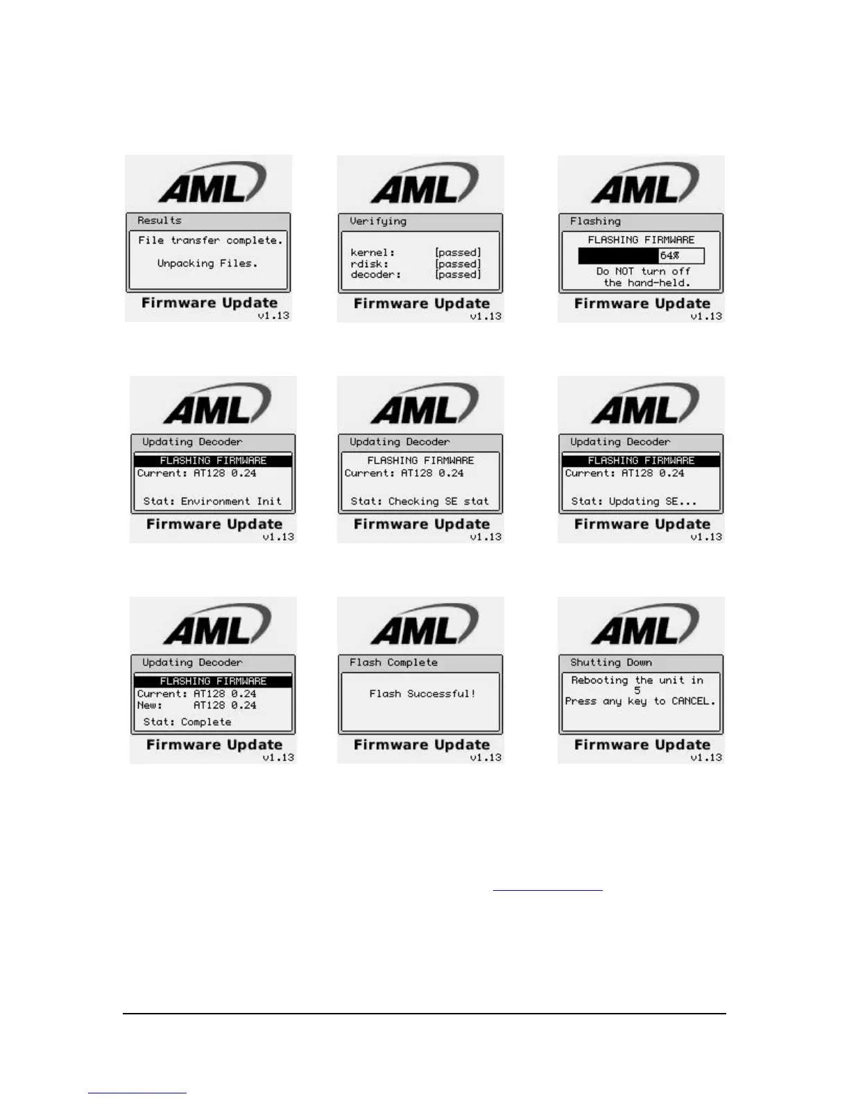 Note: The latest firmware files can be downloaded off the AML website.