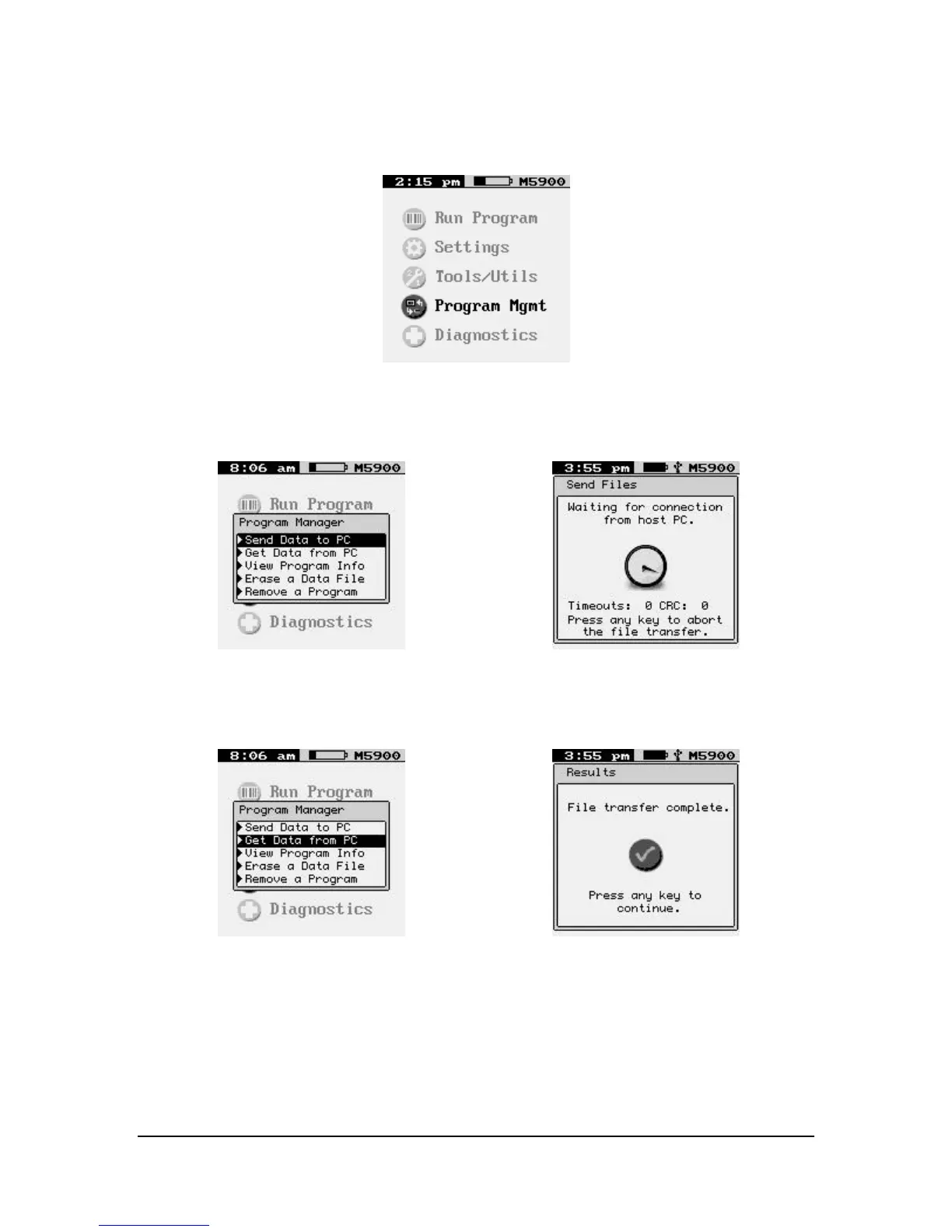 The “Get Data from PC” function allows new program files to be sent to the M5900