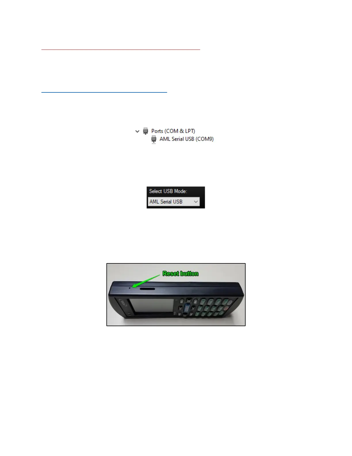 manager as unknown, then disconnect the USB cable from the device and carefully depress the reset