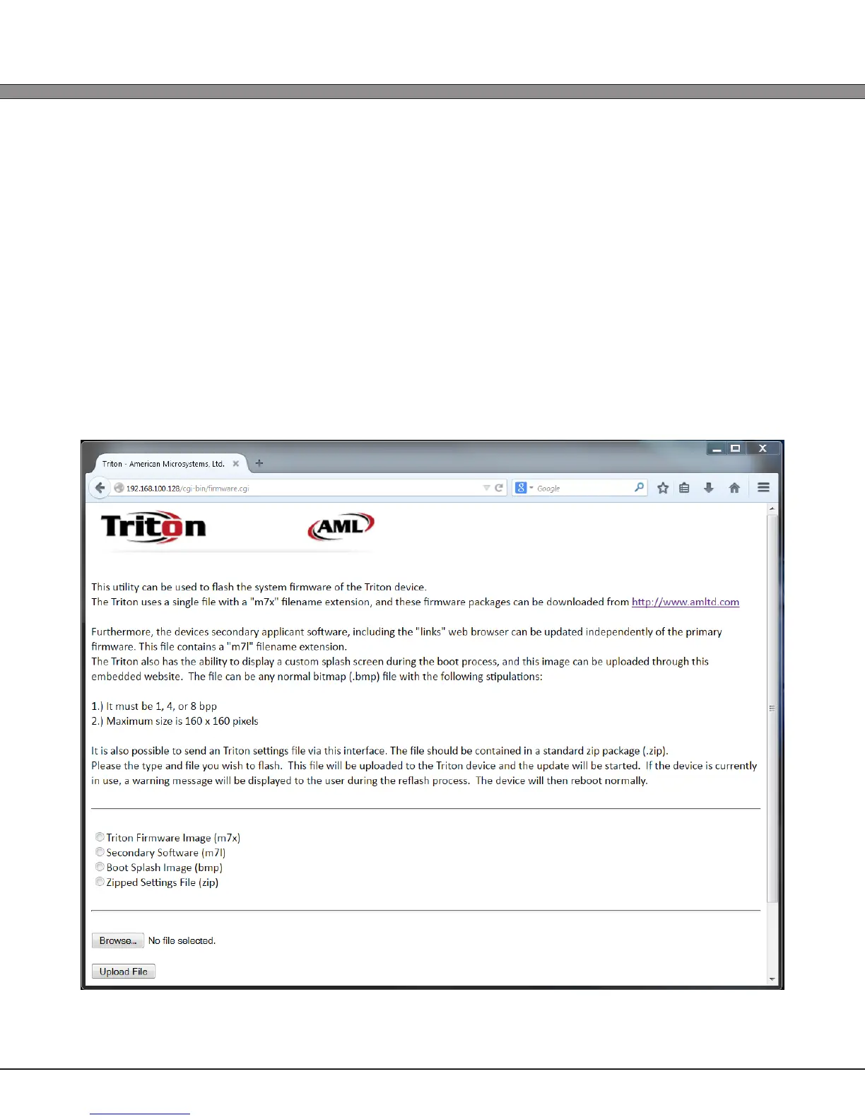 The primary Triton rmware can be uploaded to the device via this interface.