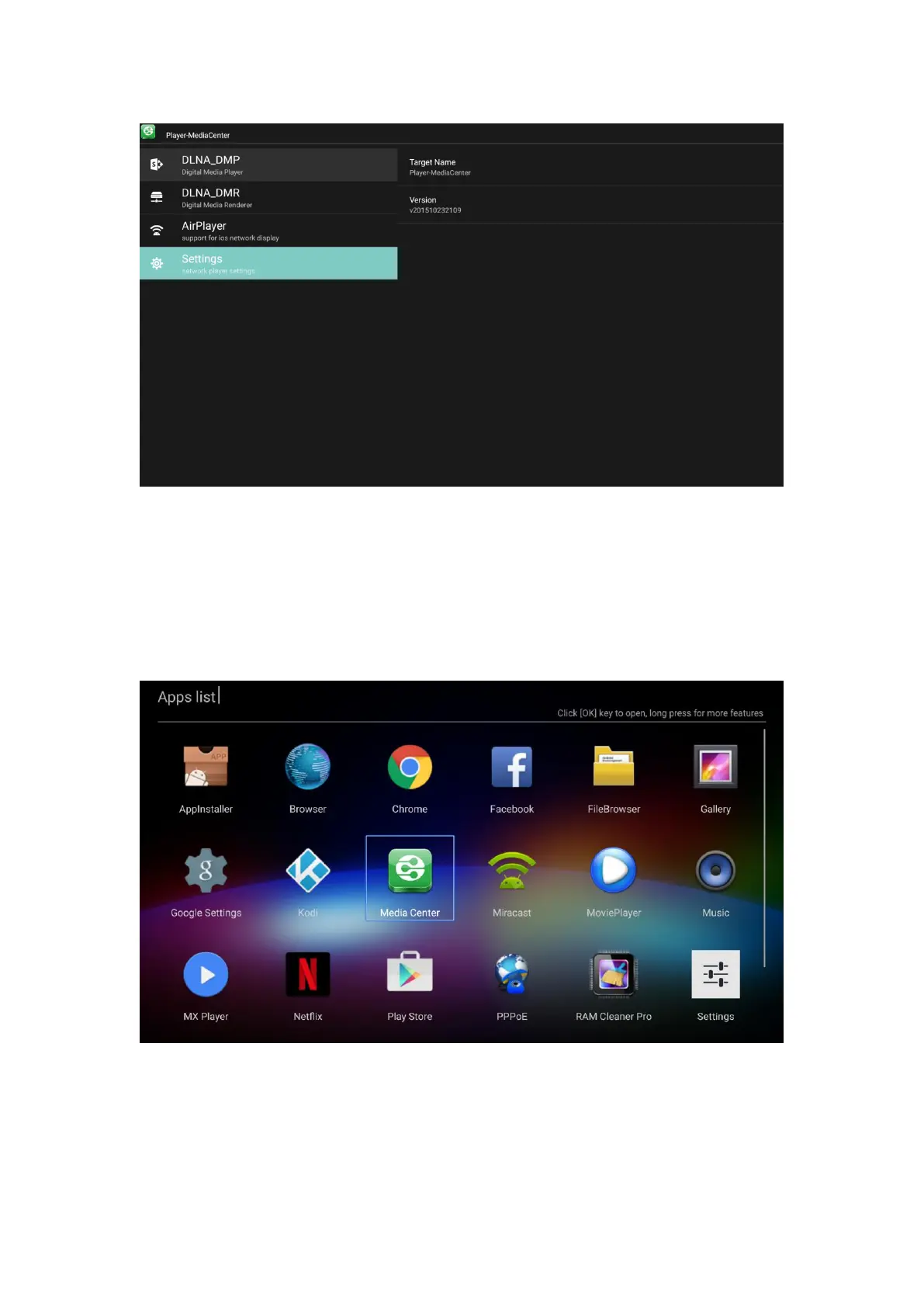 Click Media center in Apps list