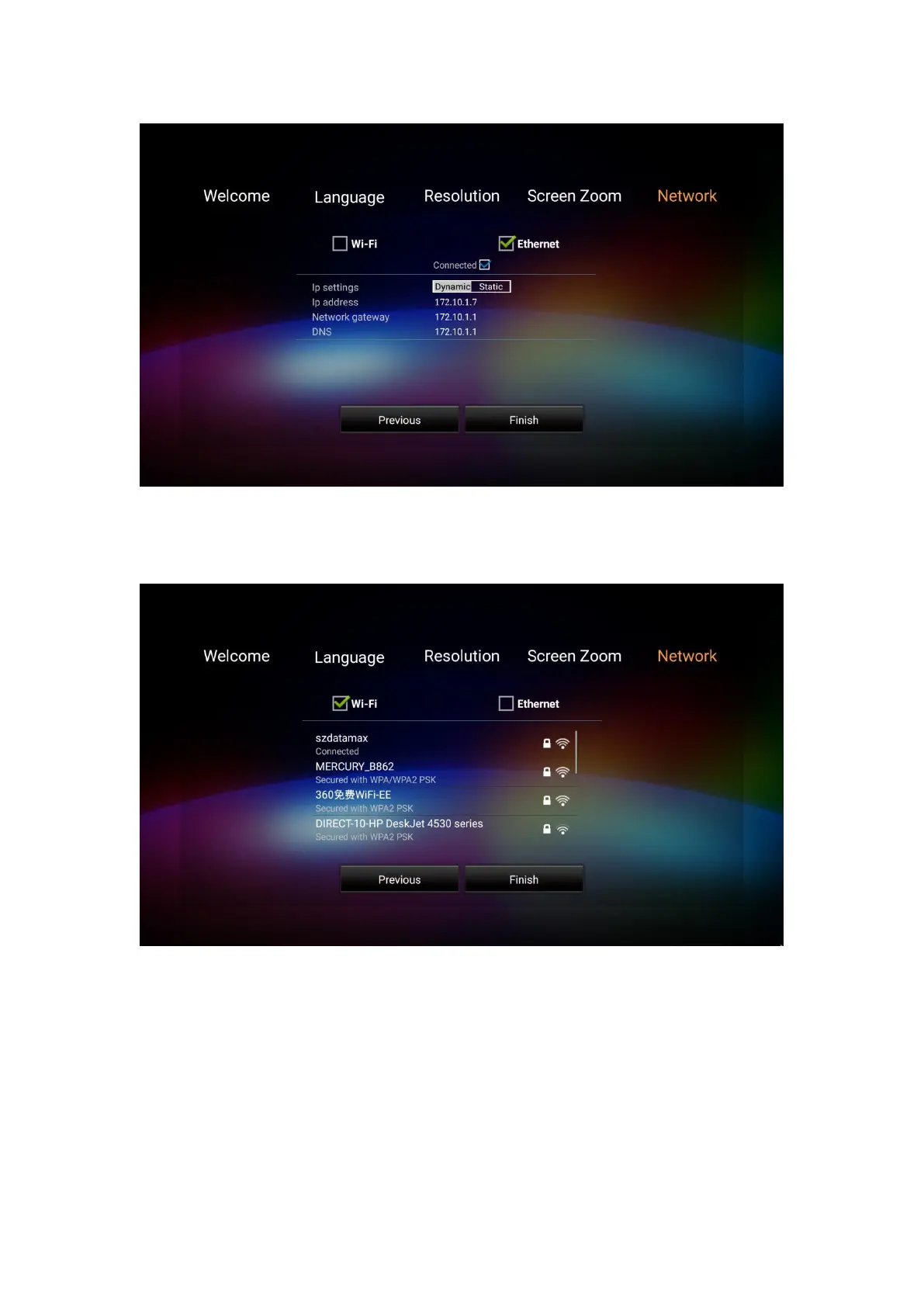 Step 6: Set up the Wi-Fi if you are using a wireless home network