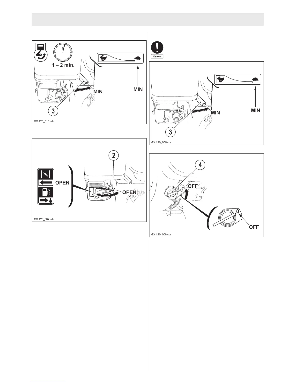 • Mo tor schal ter (4) auf «OFF» dre hen.