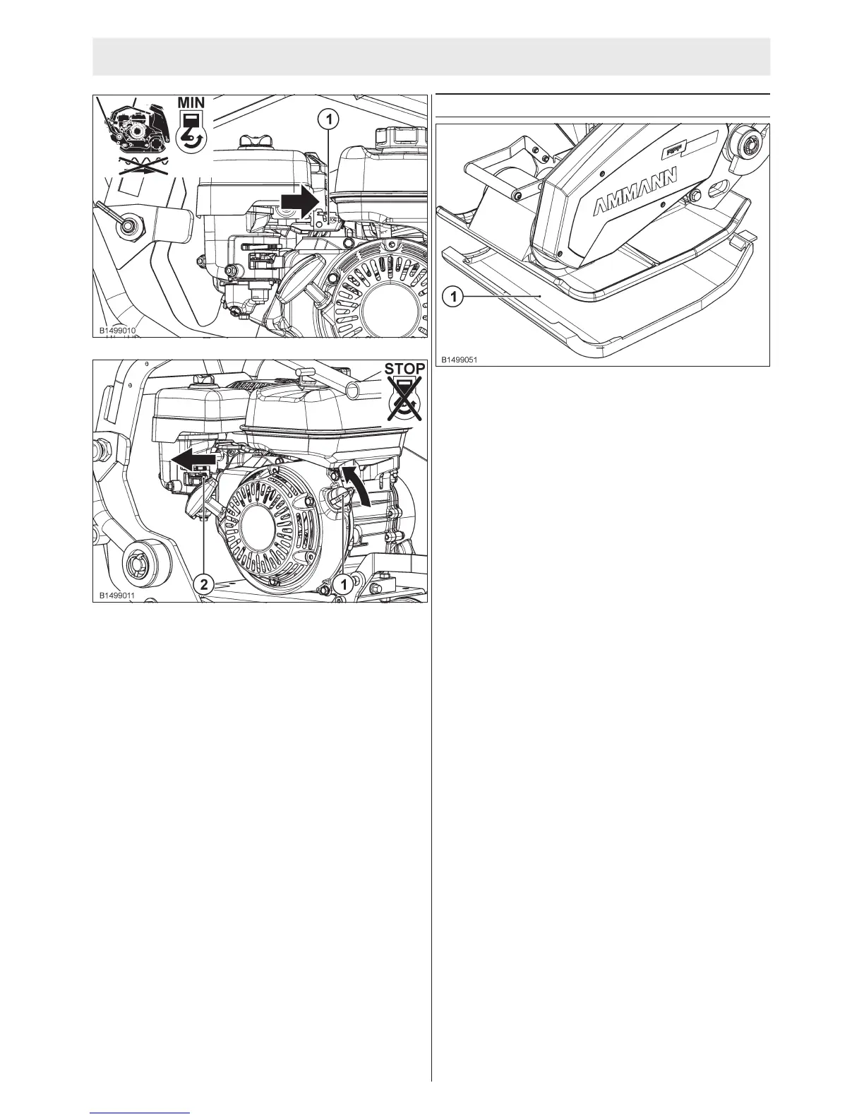• To stop the ma chine, set the throt tle le ver (1) to idle.