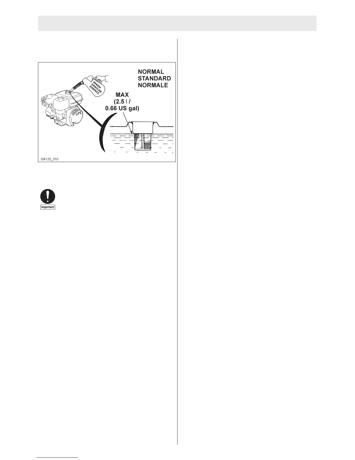 • Pour the fuel up to the lower edge of the tank's max i mum fuel