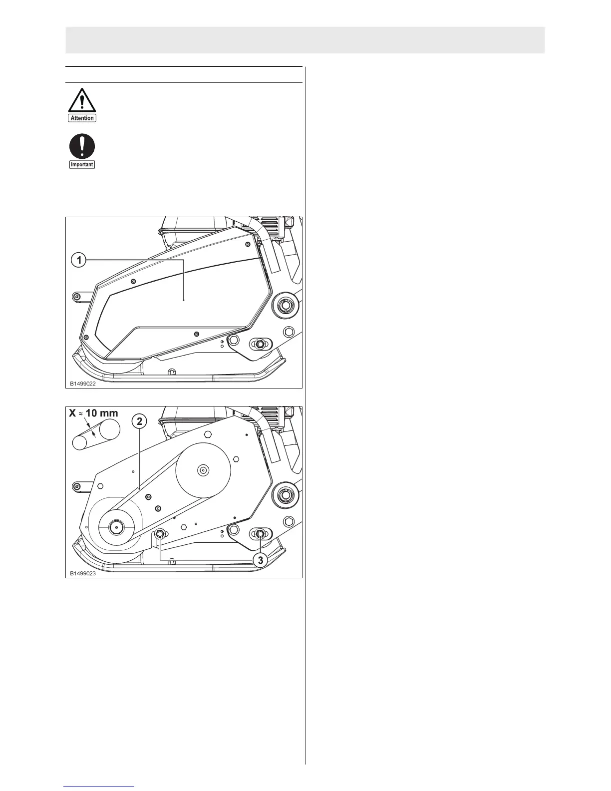 Check the ten sion of the V-belt af ter 25 op. hrs. again.