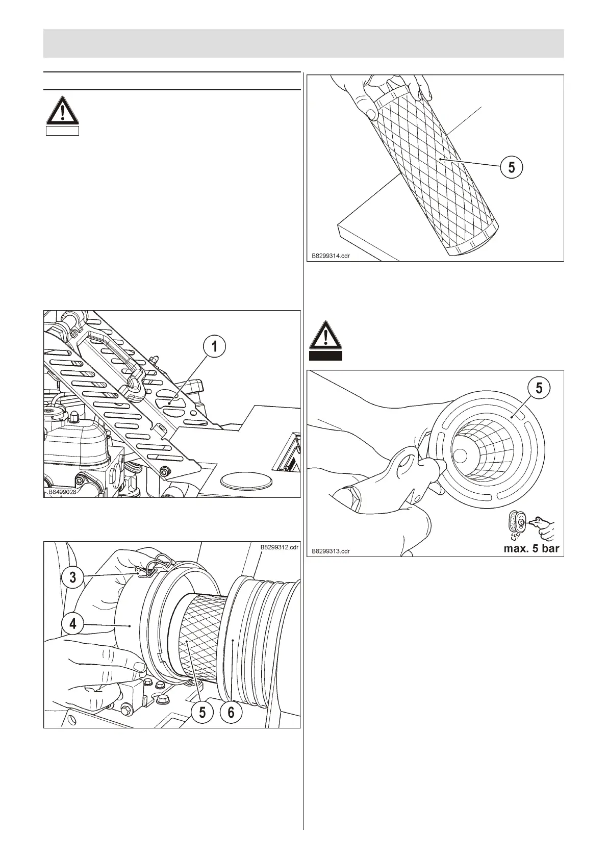 • Pur ger la car touche fil trante (5) avec de l’air com pri mé sec