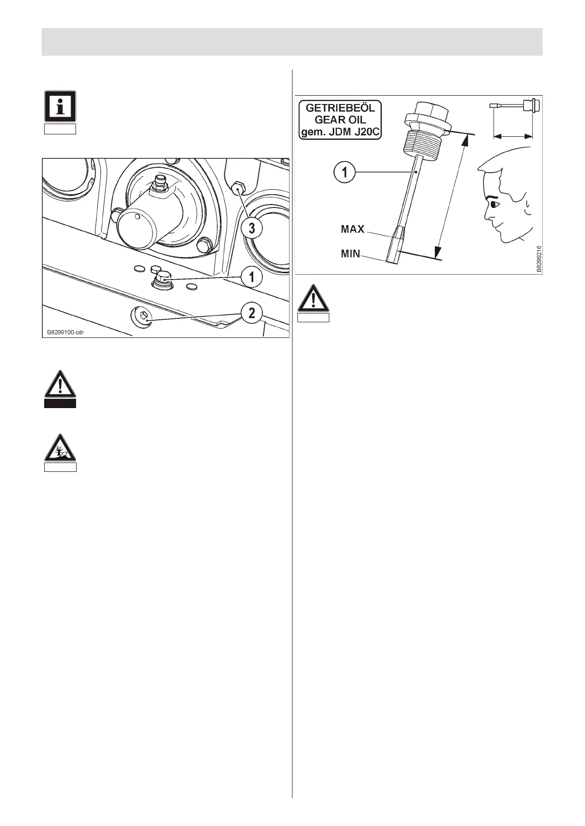 • Vis ser la bou chon/jauge d'huile (1) et la vis d’é va cua tion d’air