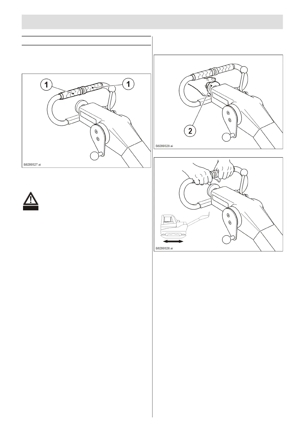 • Hold the han dle (1) tightly; the ma chine will drive off in the set