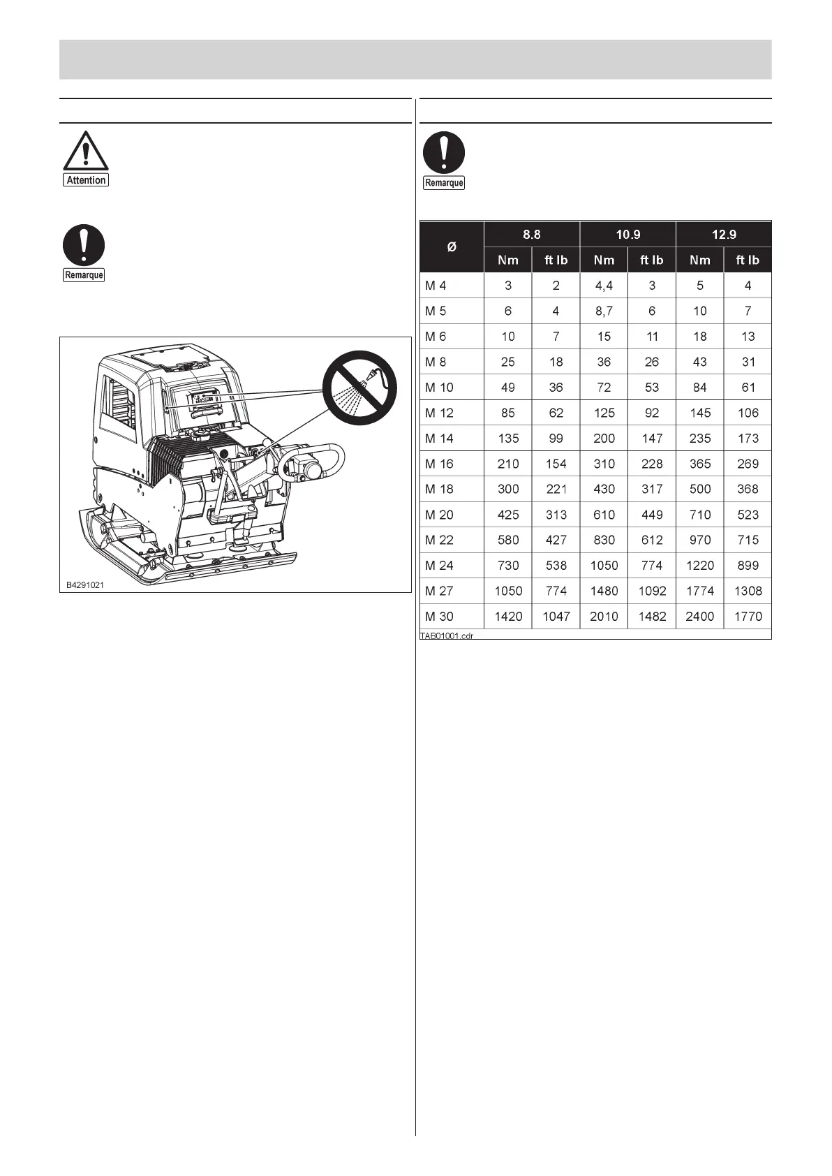 Le re spect des cou ples de ser ra ge est con trô lé avec des clés