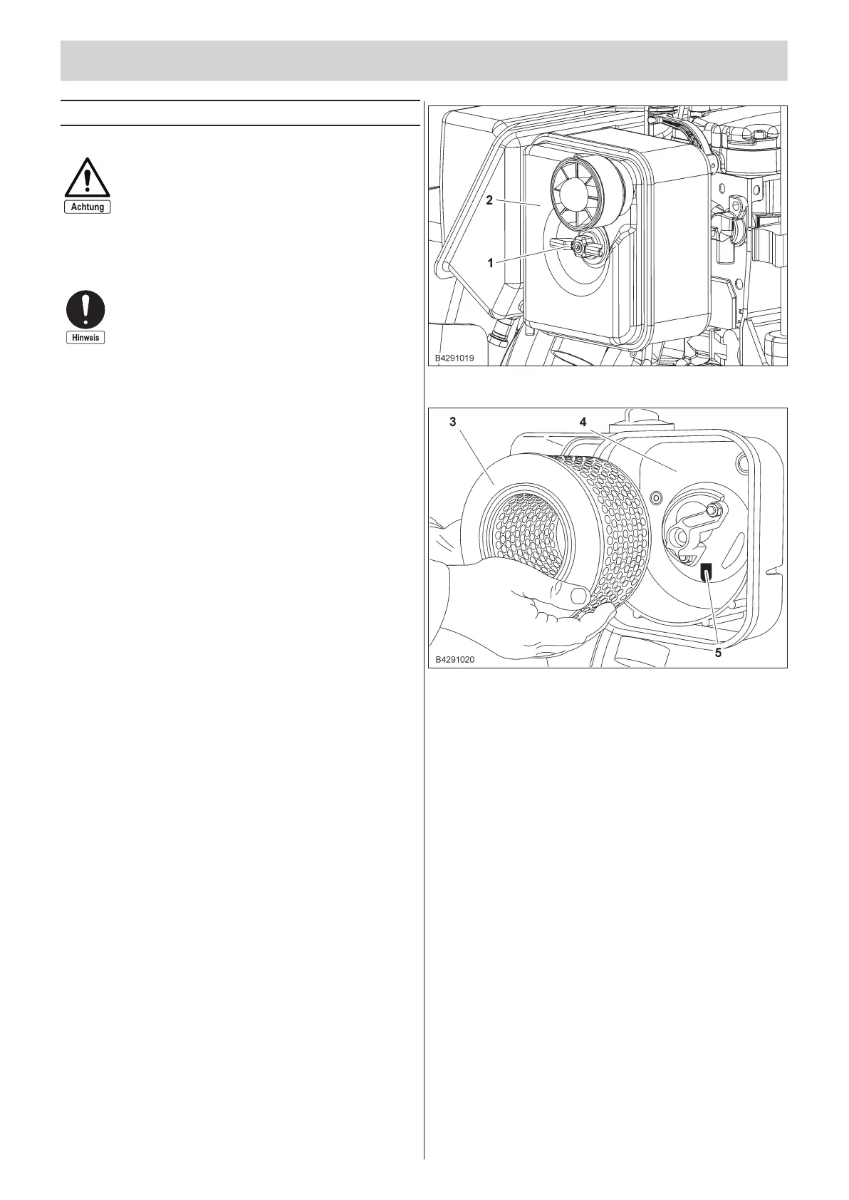 Mo tor nie mals ohne Luft fil ter ein satz be trei ben.