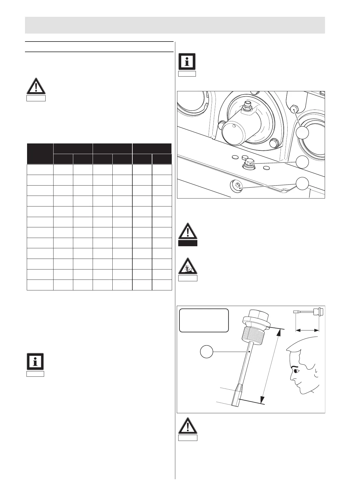 de llenado de aceite/varilla de medición (1) y el tornillo de des