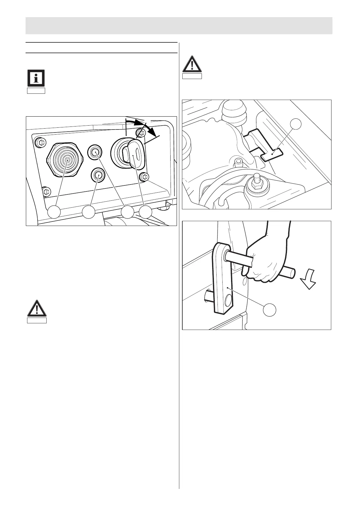 • Insert the ignition key (1) and turn to «I»; the charging indica-