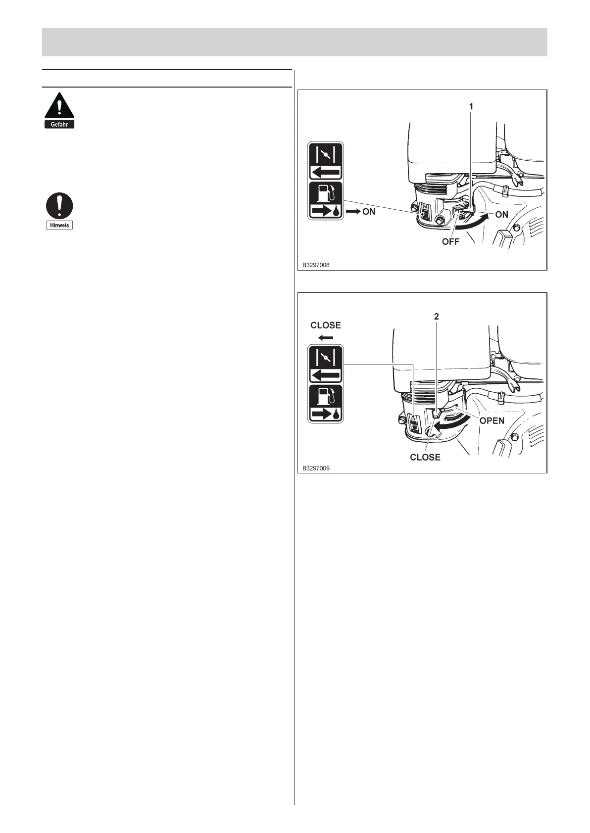 Bei kal tem Mo tor Cho ke (2) auf «CLOSE» schie ben.