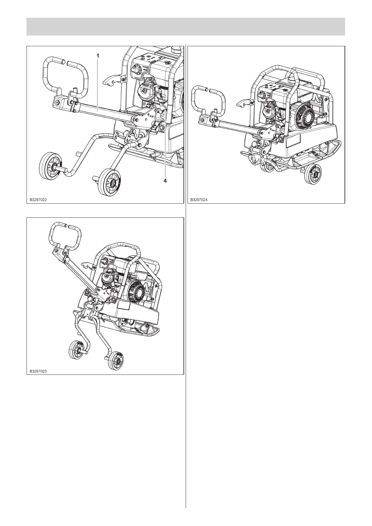 Die Maschine mit der Deichsel nach hinten kippen, bis die