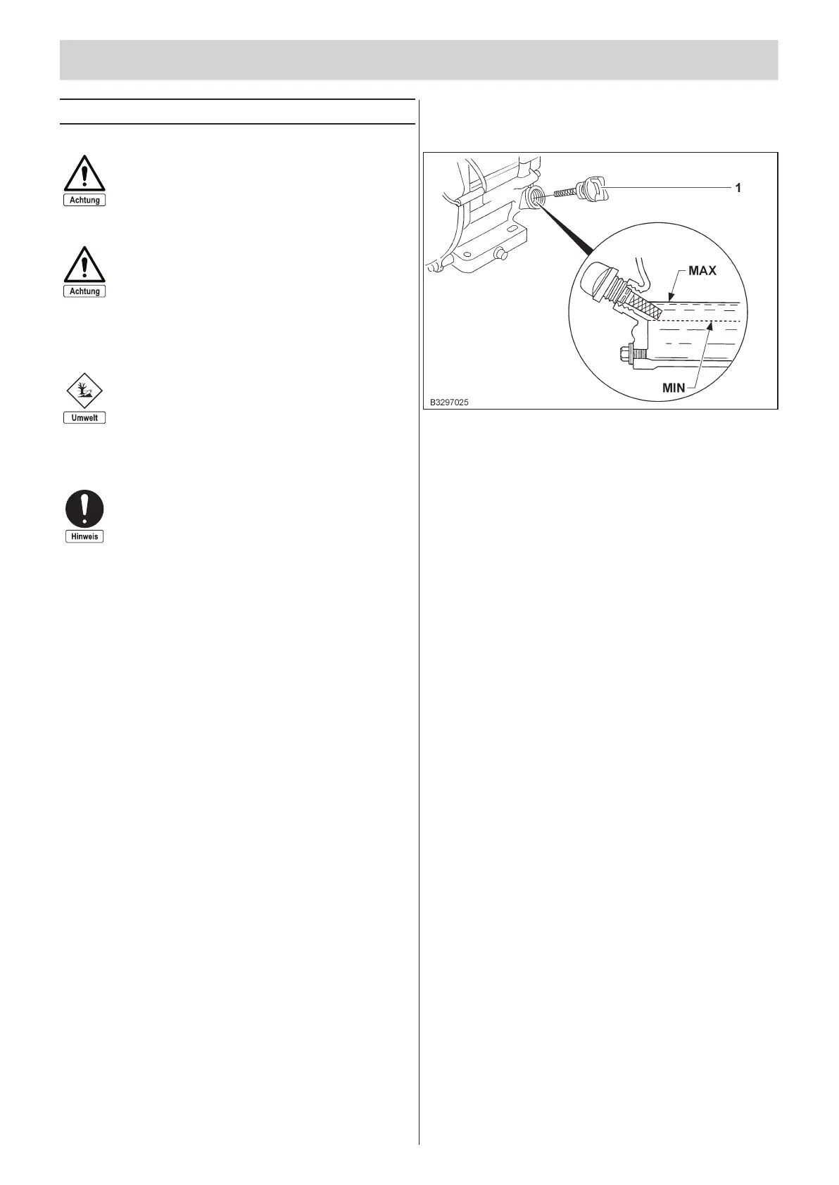 Ölstand ggf. bis zur oberen Grenzmarke (Unterkante