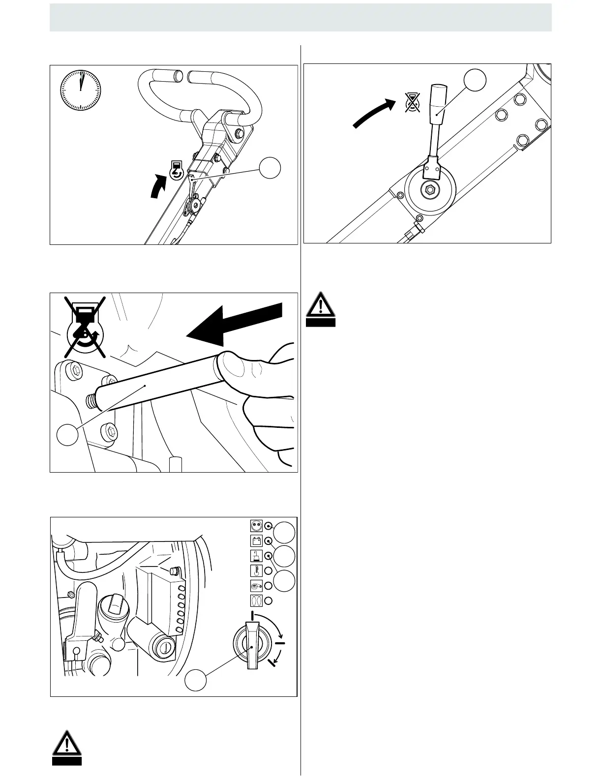 - Charg ing in di ca tor (4) and oil pres sure in di ca tor (5) lights up.