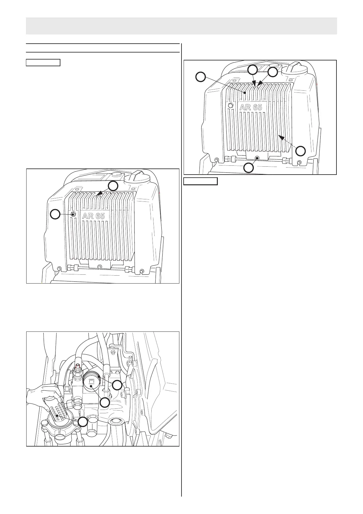 Abrir el tornillo de llenado de aceite (1) y el tornillo de purgado