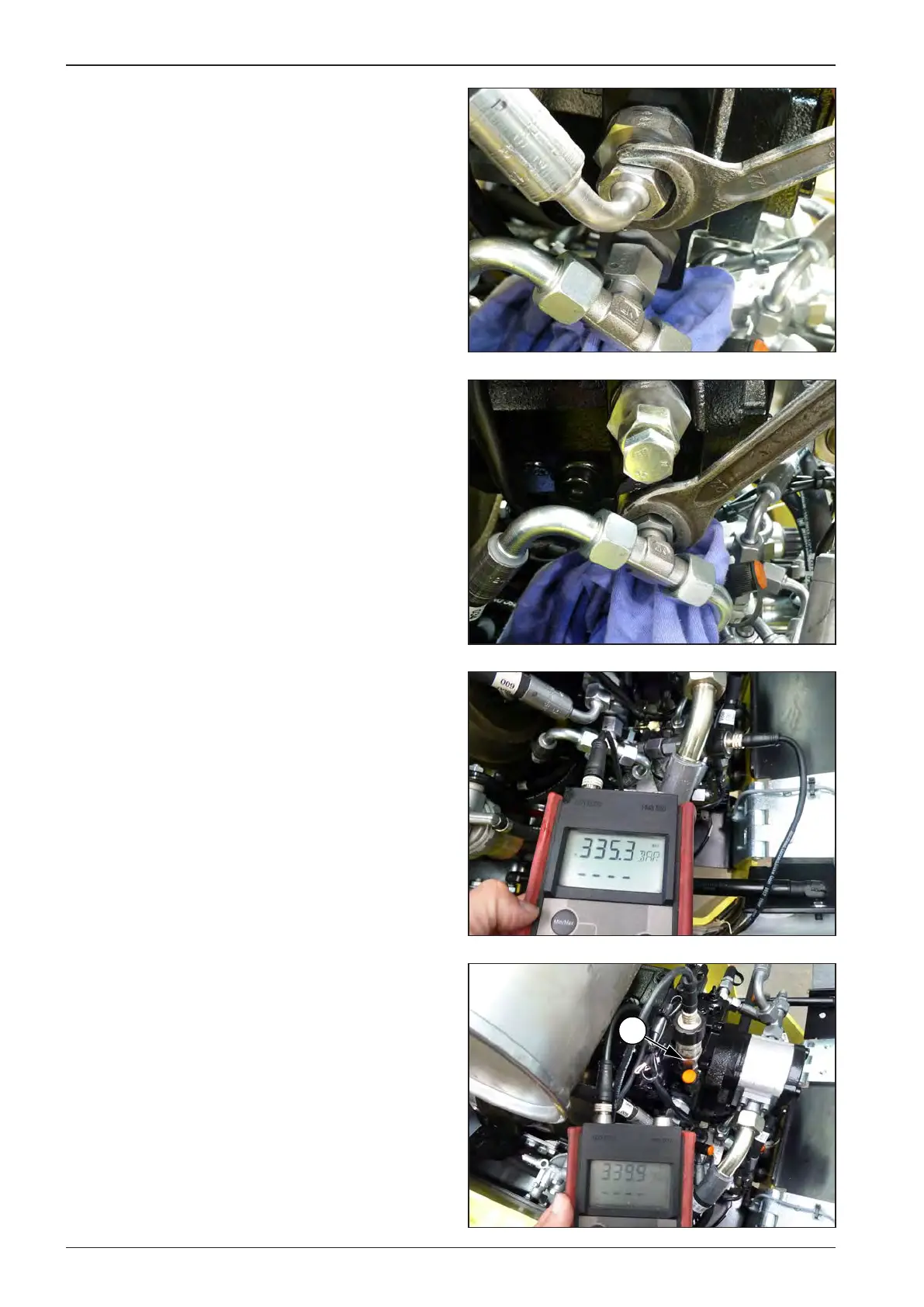 Connect a pressure gauge (at least 400 bar) to the MB travel