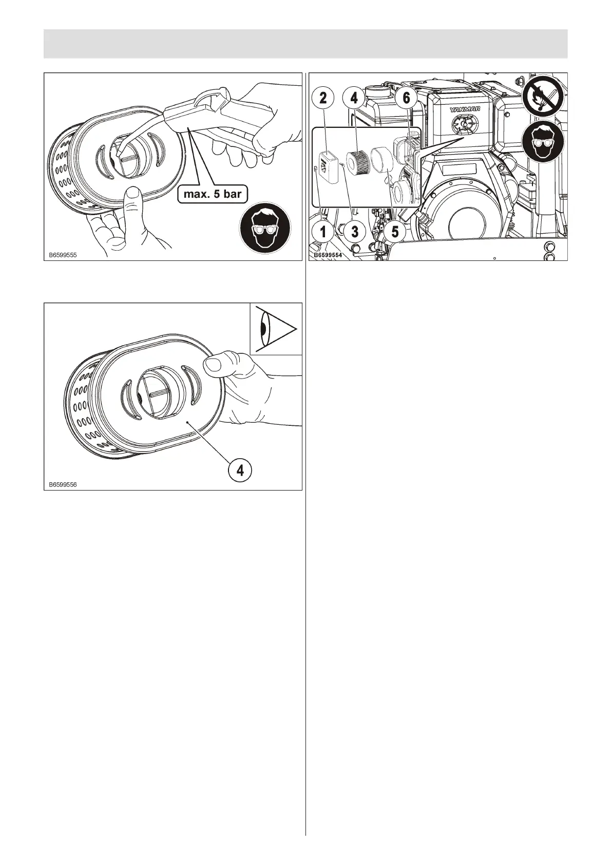 • Co lo que cui da do sa men te el fil tro de aire (4) y el ele men to de