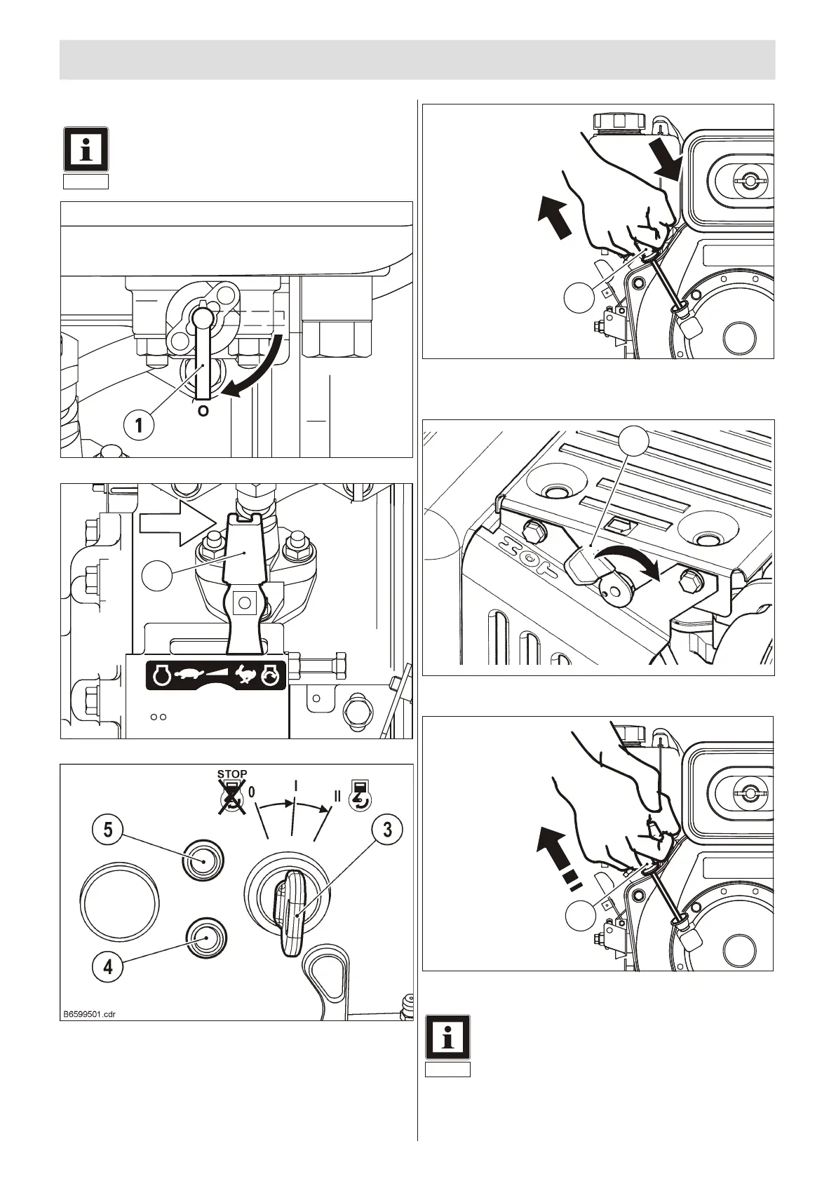 • Turn the ig ni tion key to the «I» po si tion. If the start ing pro cess