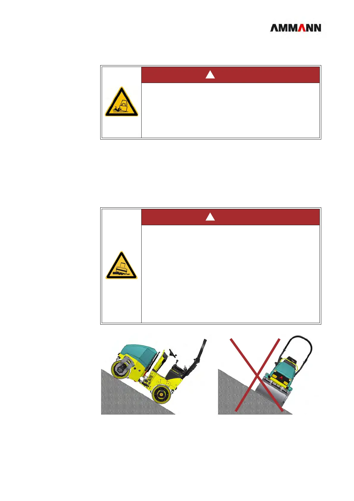 Rollover hazard when driving the roller!