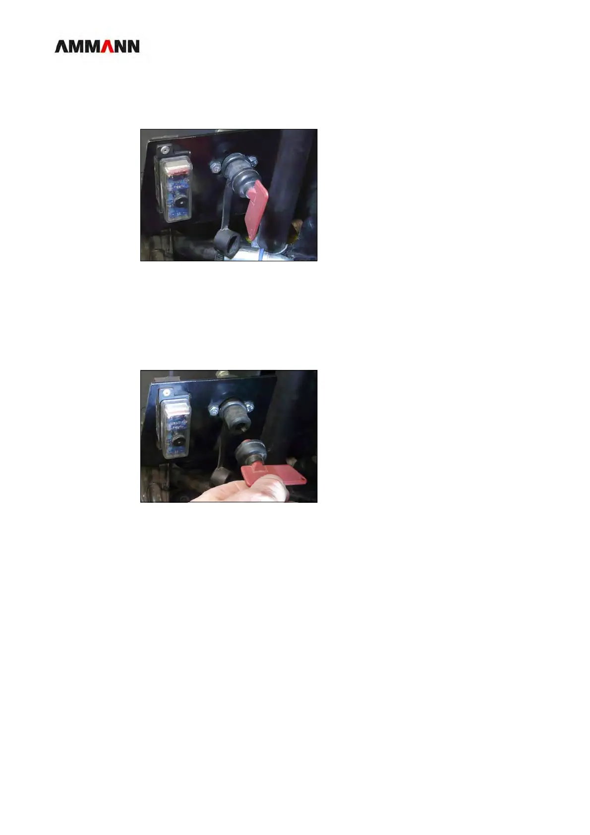 1 Turn the red key of the battery cut-off switch down to vertical position.