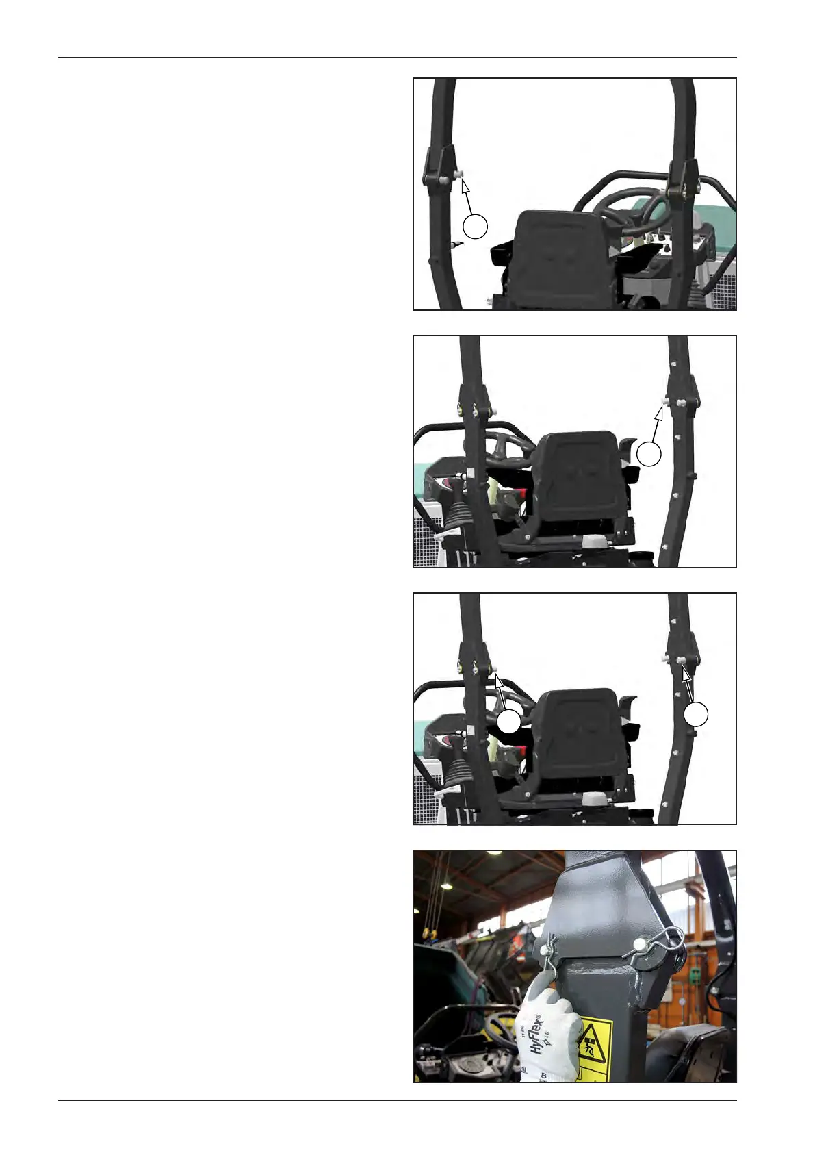 Tighten the rear pegs (2) on the left and right side of the ROPS