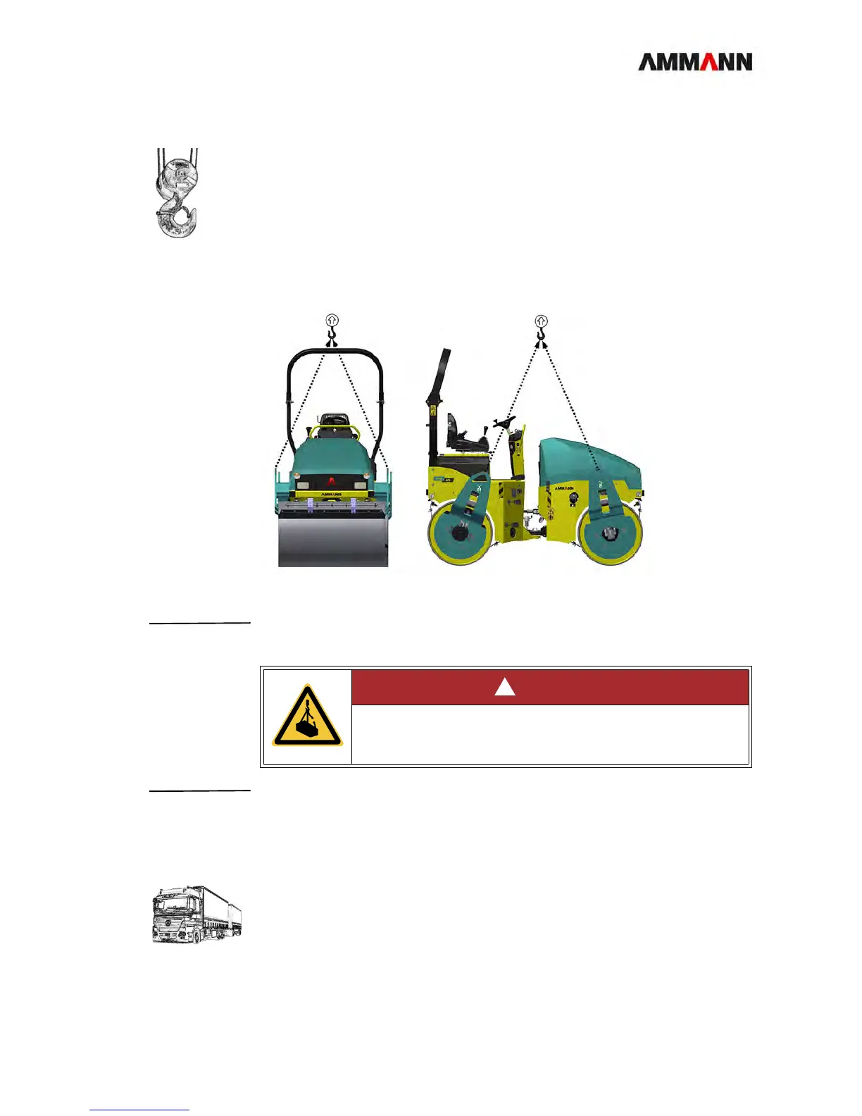 Ammann ARX 45 K - Lifting at the 4-Point Lifting Eyes; Securing the Roller on the Transporter