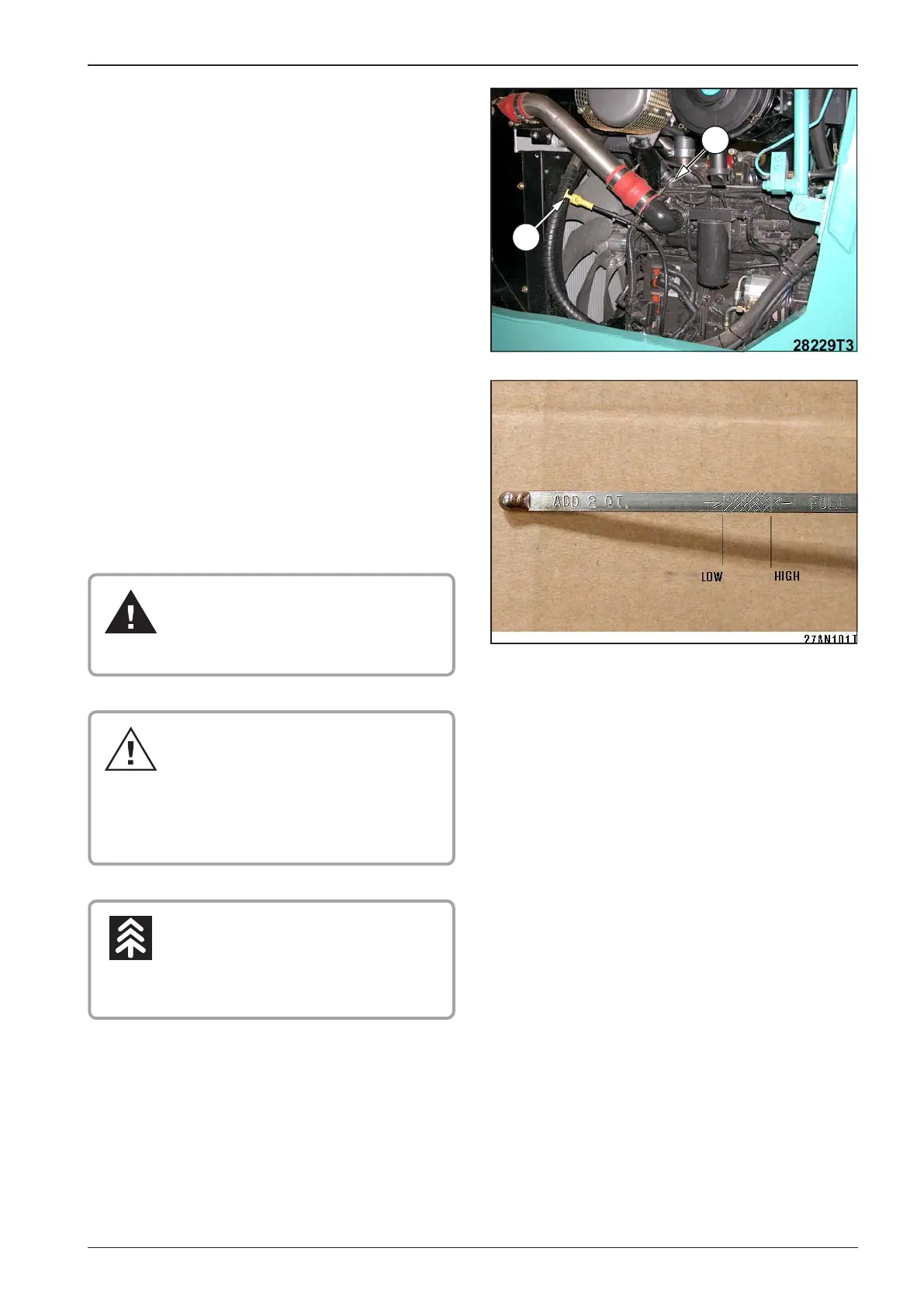 Rell oil to the upper oil level mark 2. Oil charge is 11 l (12 qt) •