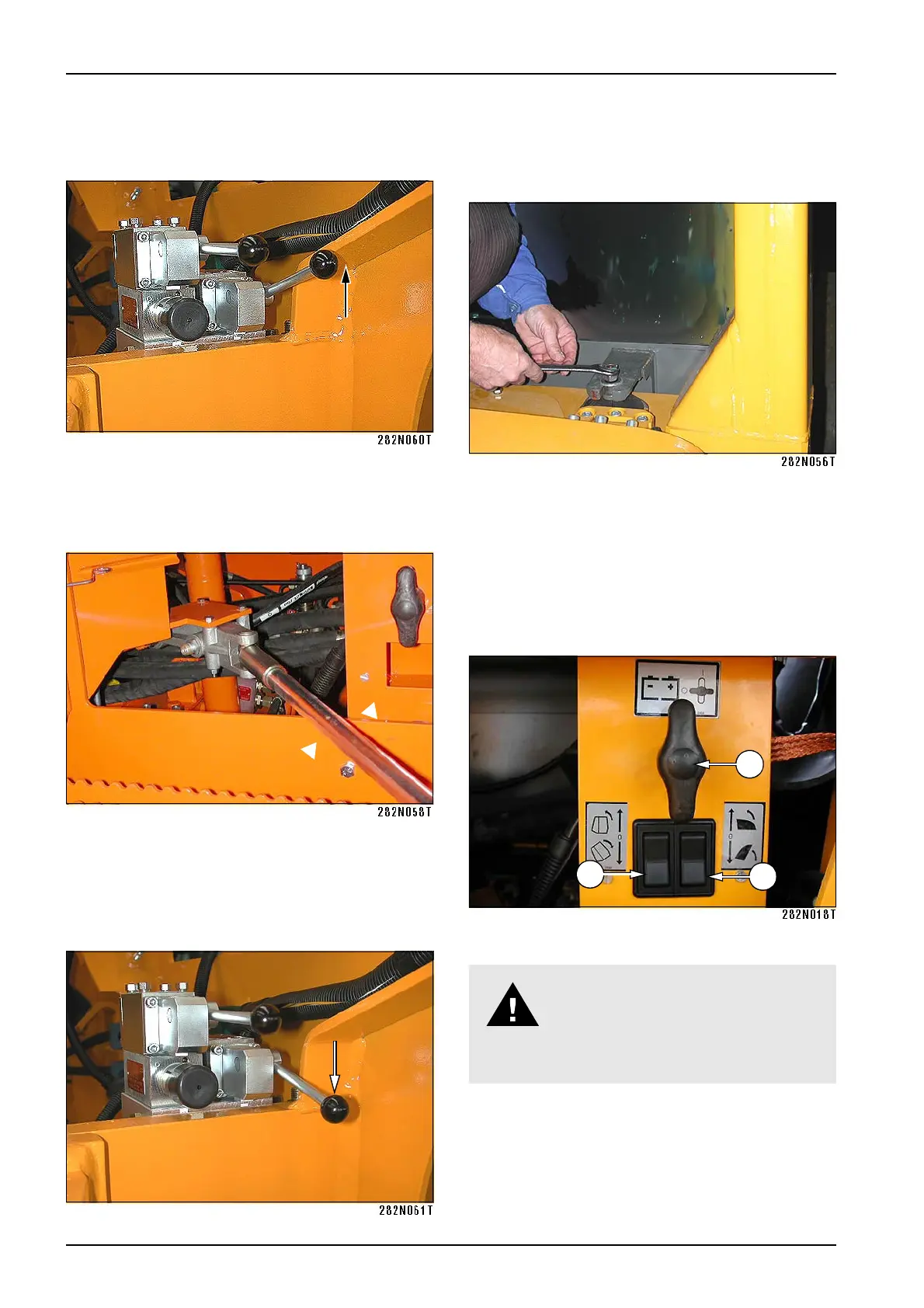 • Insert the lever to the pump and lift the driver’s stand.