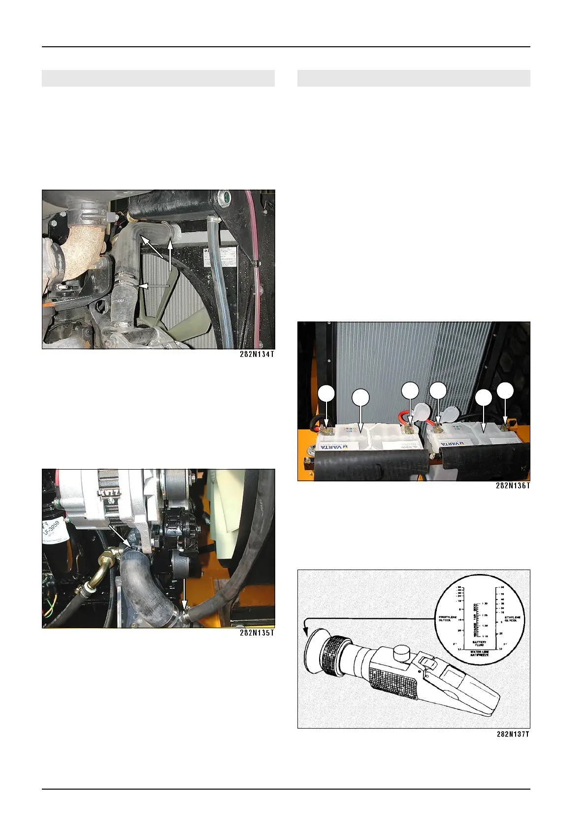 • Check the level of electrolyte after opening plugs of the