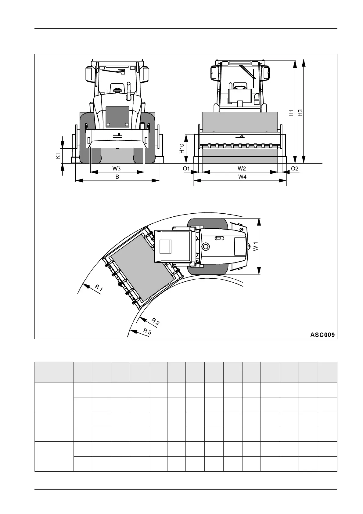 Dimension Chart of the Machine ASC 130 (with cab and ROPS frame)