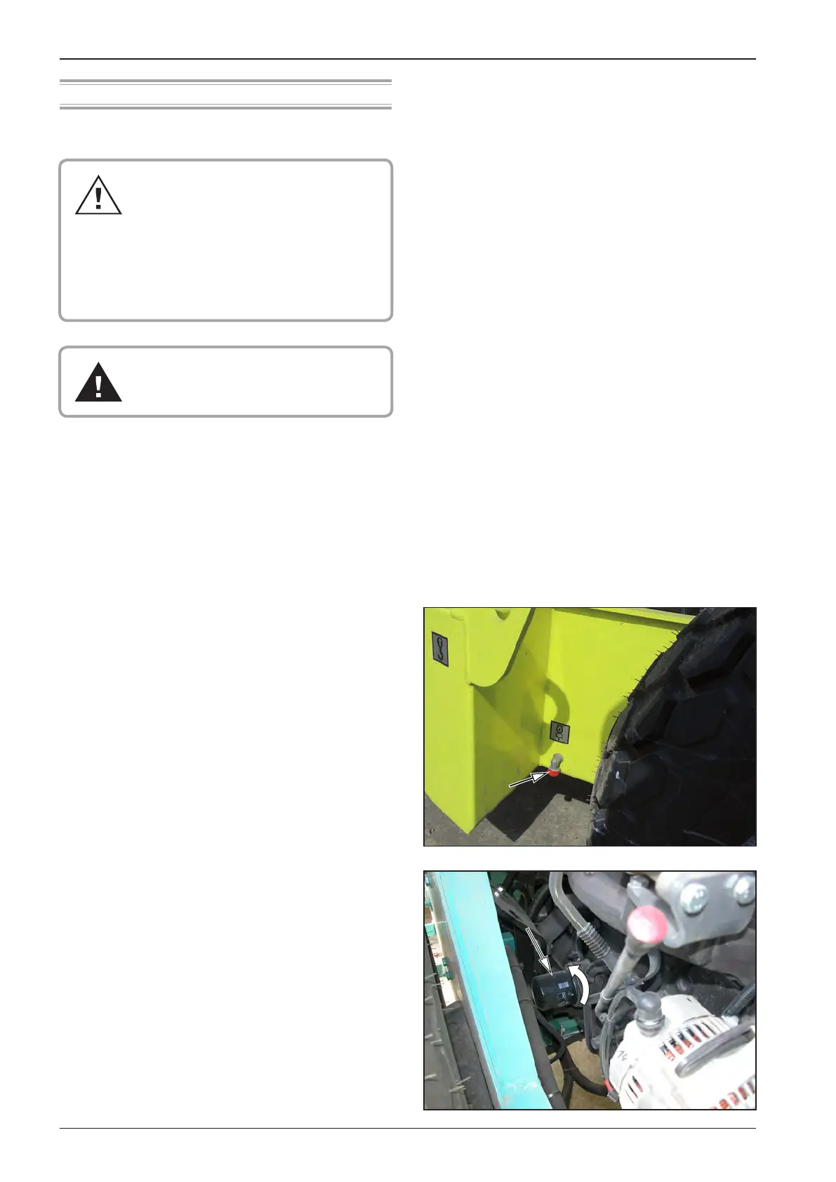 • Clean the oil lter and its vicinity. Remove the lter.