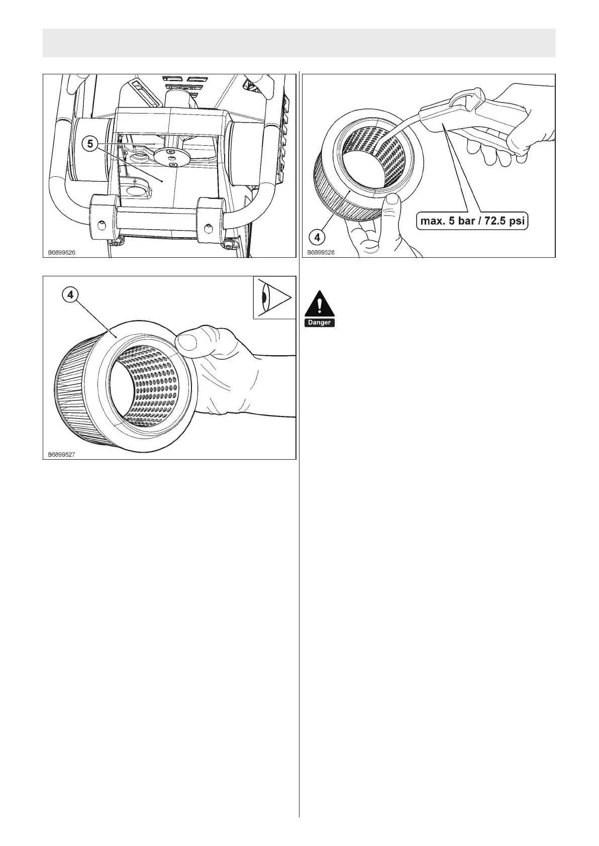 Blow dry com pressed air (max. 5 bar / 72.5 psi) through the fil -