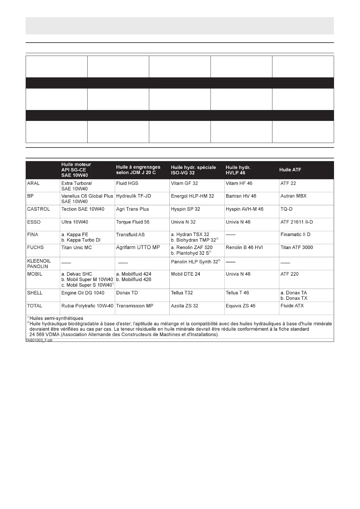 5.4 Tab leau des al ter na ti ves en ma tiè re de mar ques de lu bri fi ants
