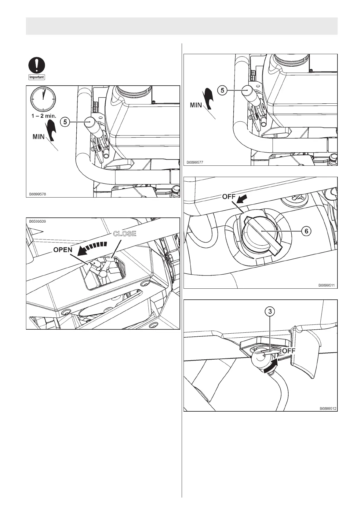 Slide the choke le ver to «OPEN» while the ma chine warms