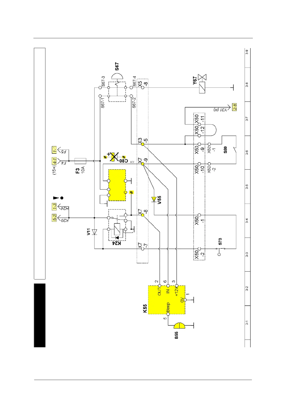 Emergency stop circuit, operating lever zero position, seat contact Loxam