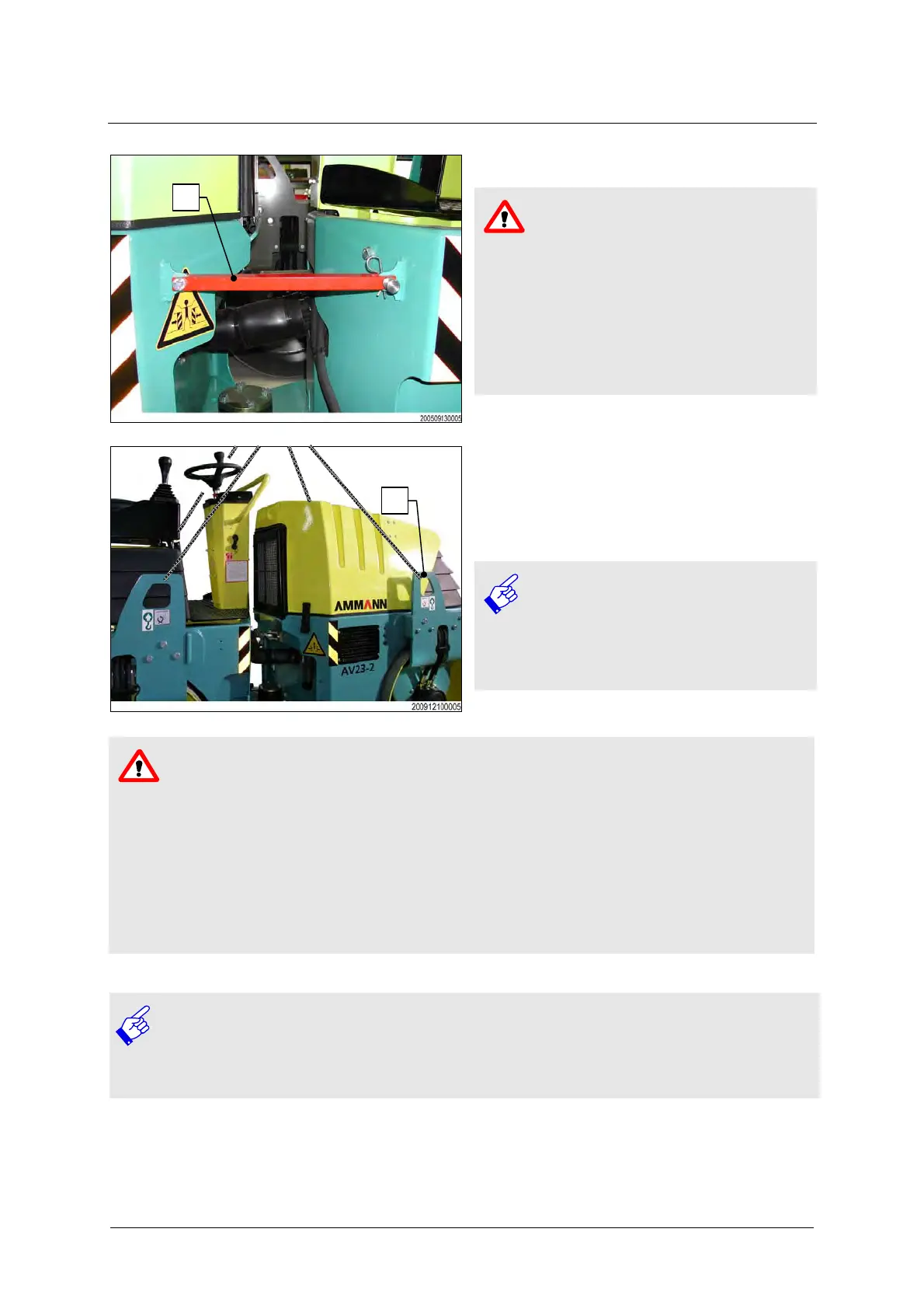 • Secure the machine on transport vehicles to prevent it from rolling away,