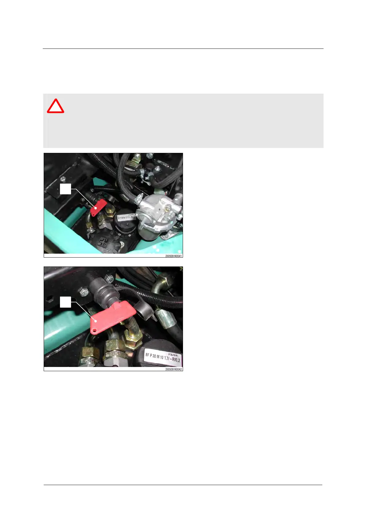 Turn the red key (1) of the battery cut-