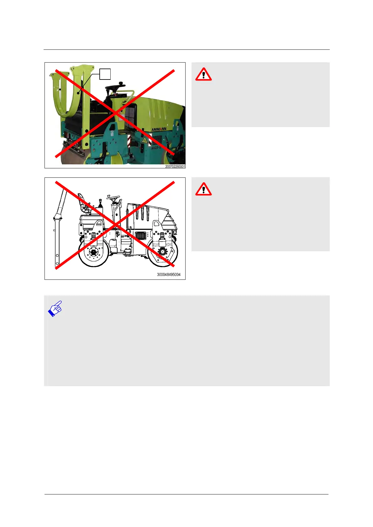 • The roller chassis is not bent or cracked in the area of the ROPS