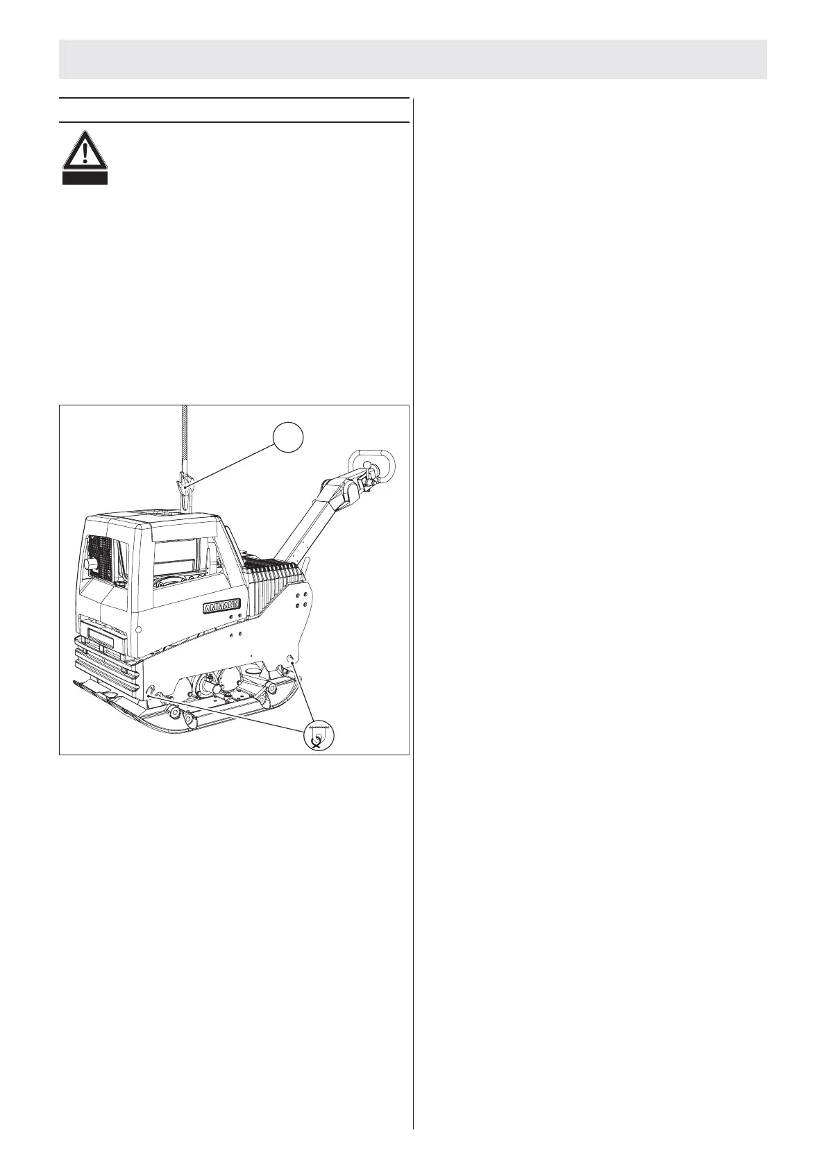 Use the centre-of-gravity suspension point (2) in order to lift the