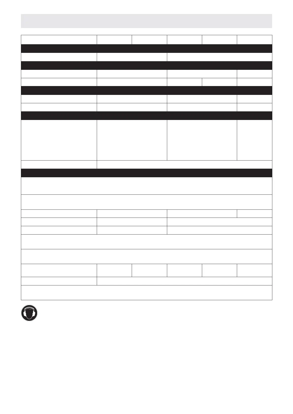 Da bei dieser Maschine der zulässige Beurteilungsschallpegel von 85 dB (A) überschritten werden kann, sind vom Bediener Schall