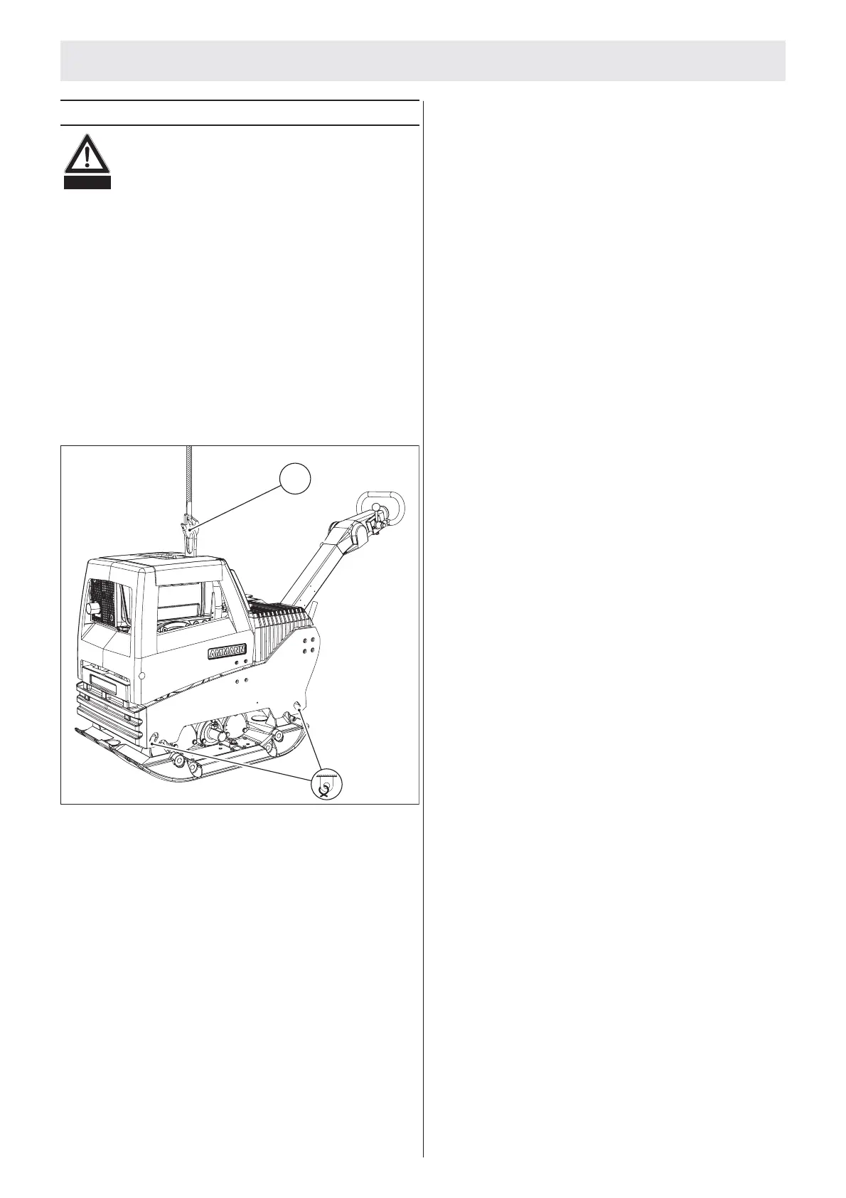 Zum Heben der Maschine, Kranhaken in die Zentralpunktauf