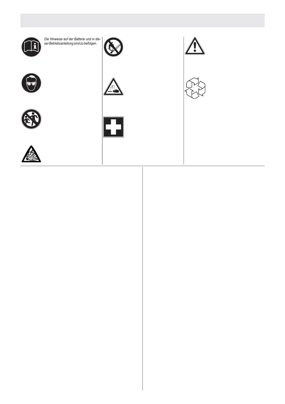• Ungefüllte Batterien bedürfen keiner Wartung.